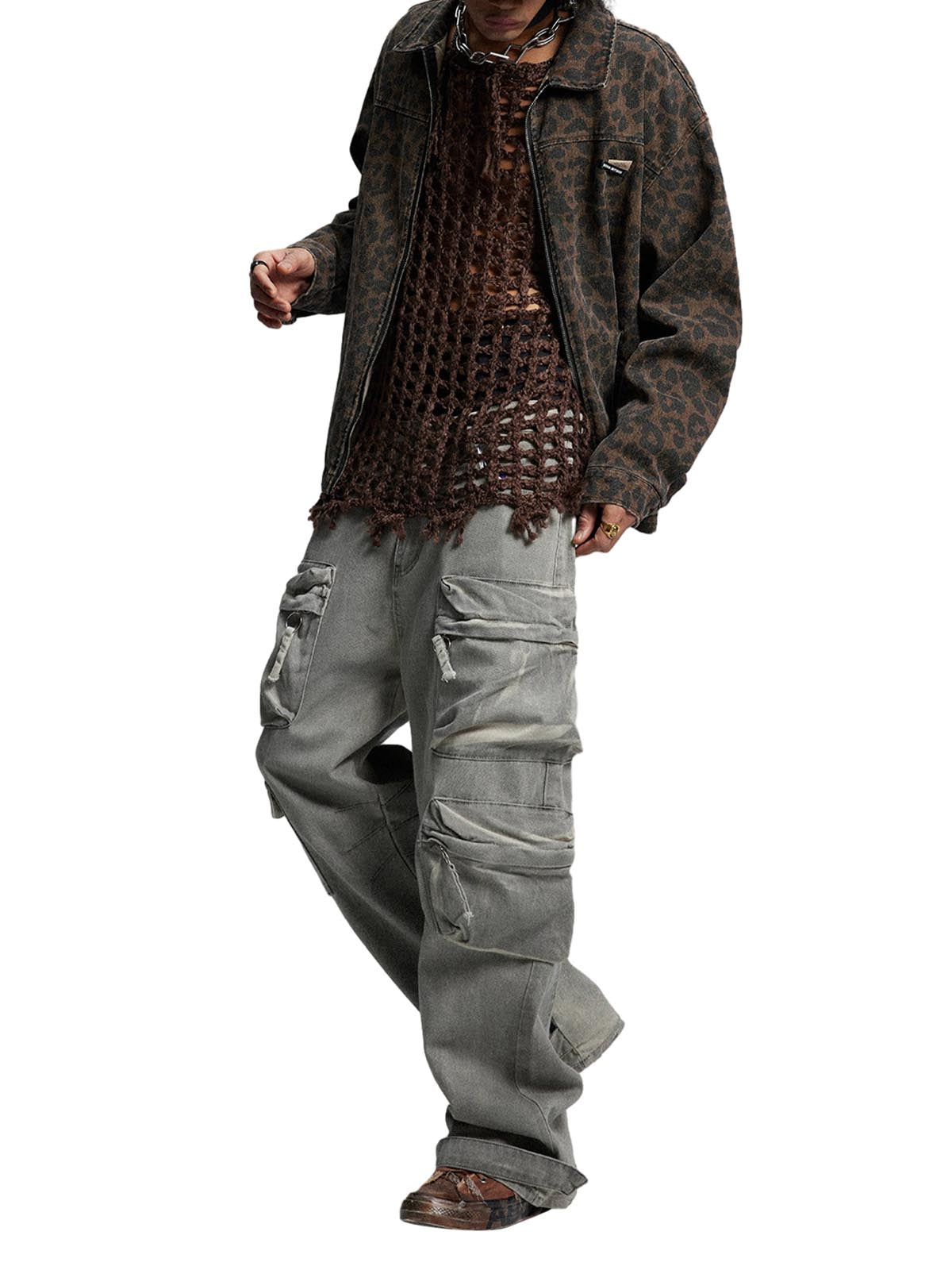Fleece Vintage Side Stripe Drape Paratrooper Machete Wide Leg Pants - 2488