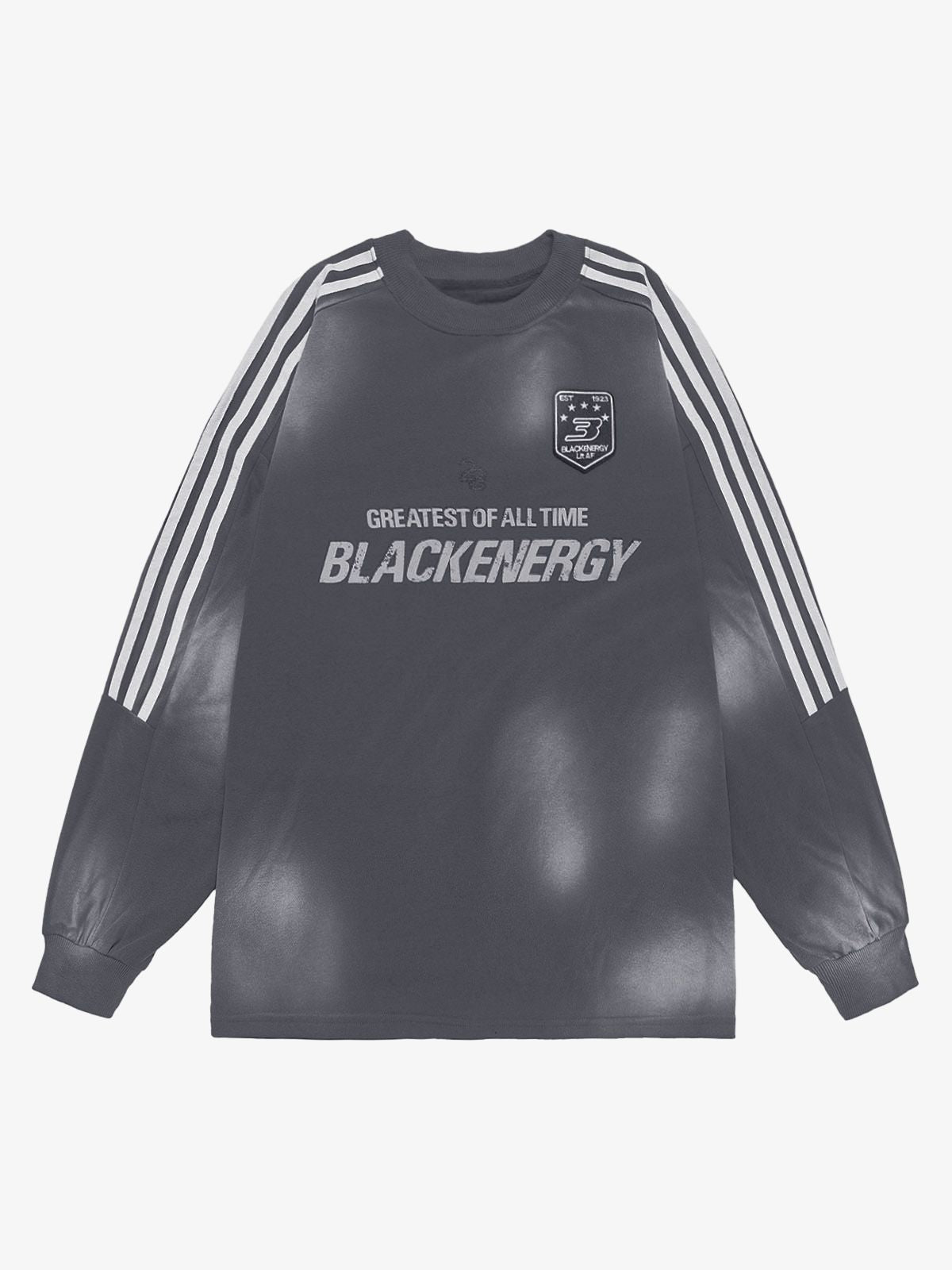 • Detail Features: Crew Neck, Long Sleeves, Graphic Print, Striped Shoulder Details