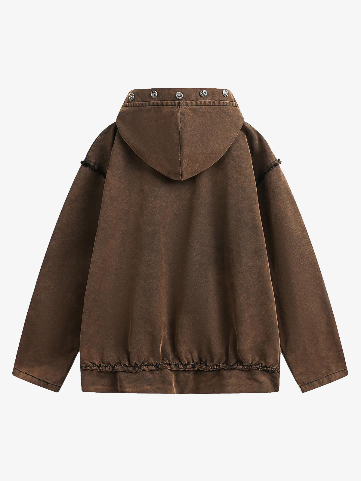 Distressed Washed Rivet Hooded Denim Sweatshirt