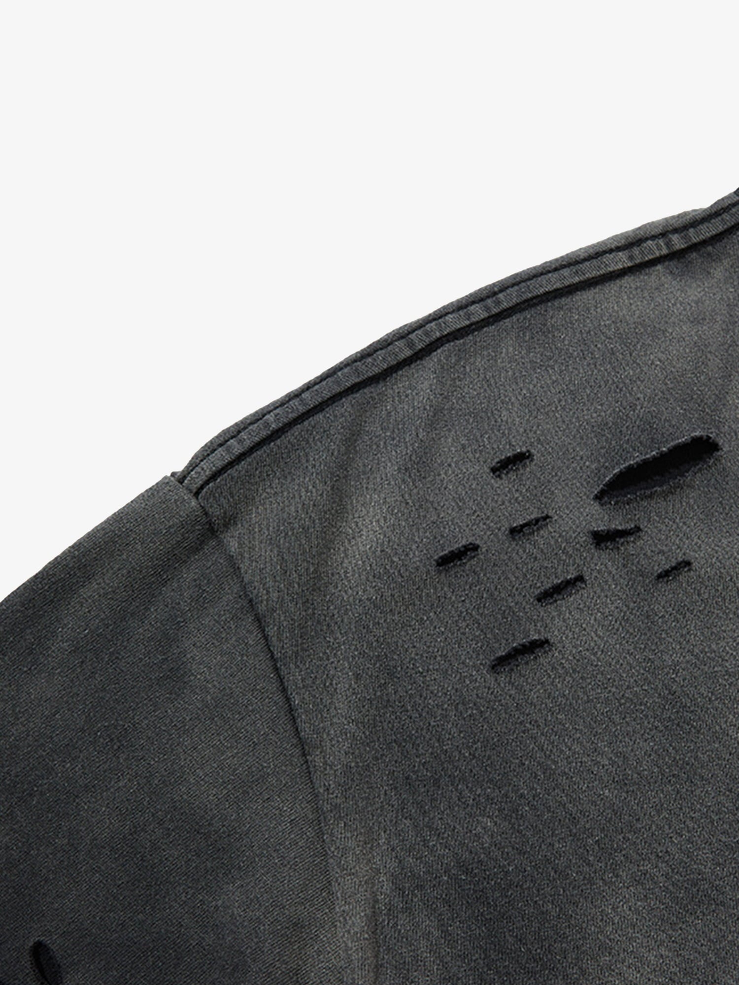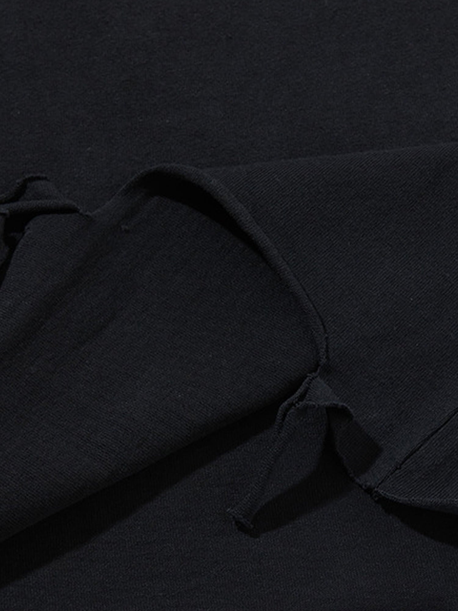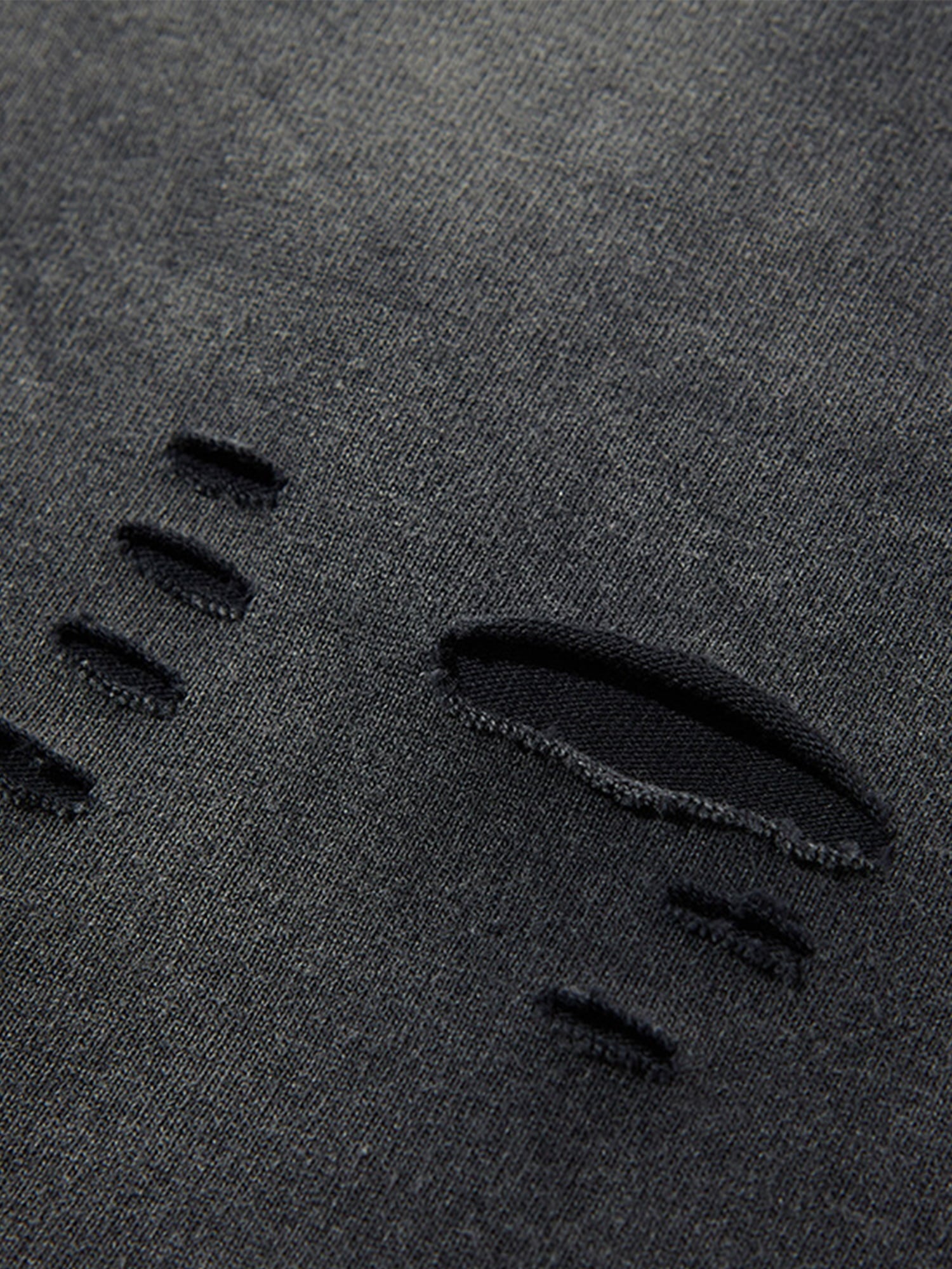 • Detail Features: Distressed Details, Drawstring Hem, Short Sleeves, Round Neck