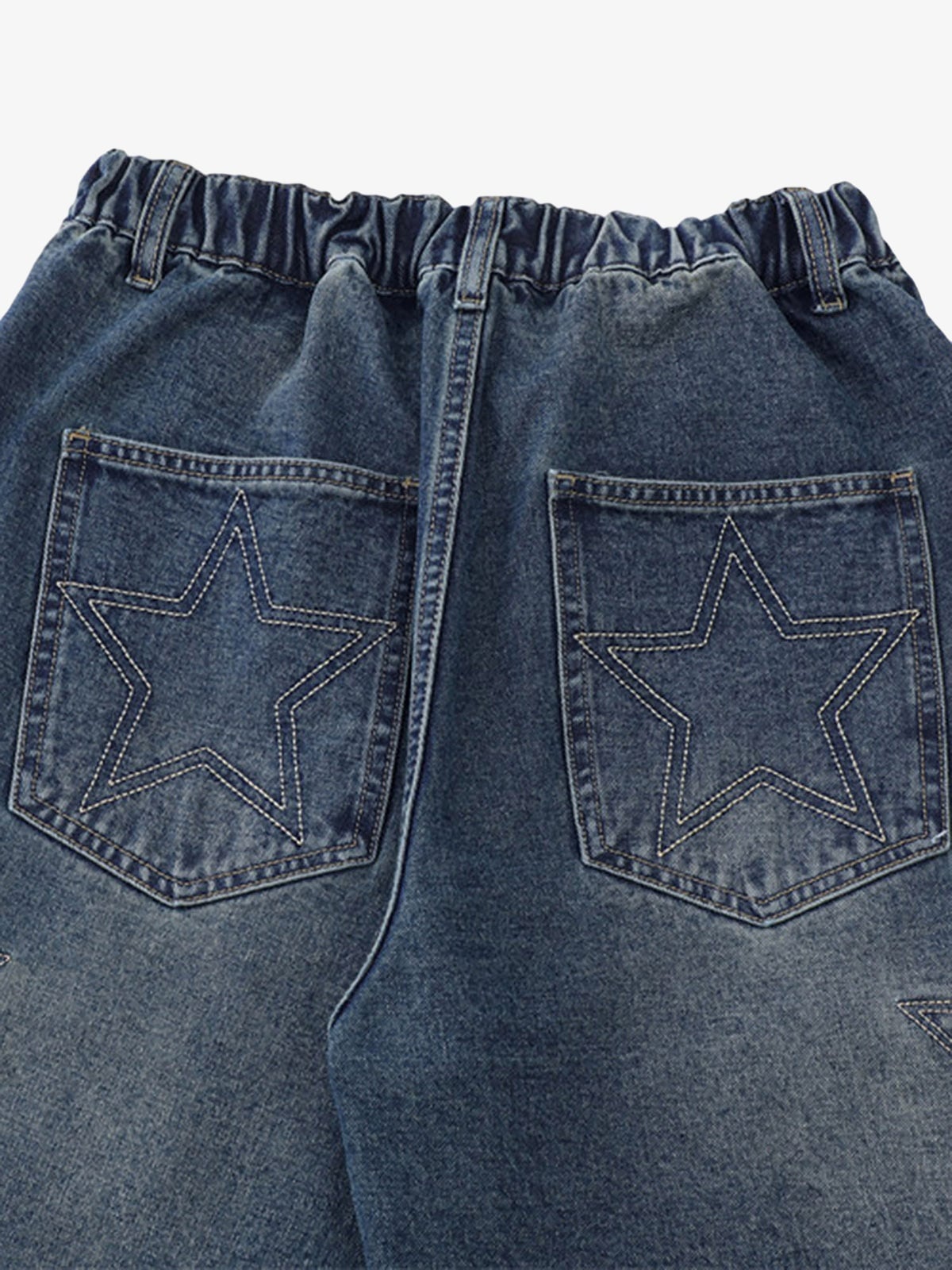 Street Patchwork Star Embroidered Denim Shorts - 2133