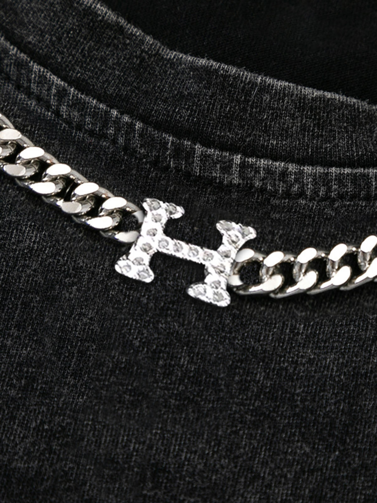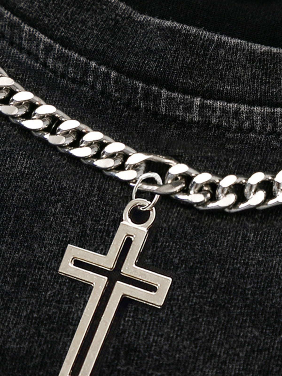 • Detail Features: Distressed Edges, Graphic Print, V-Neck