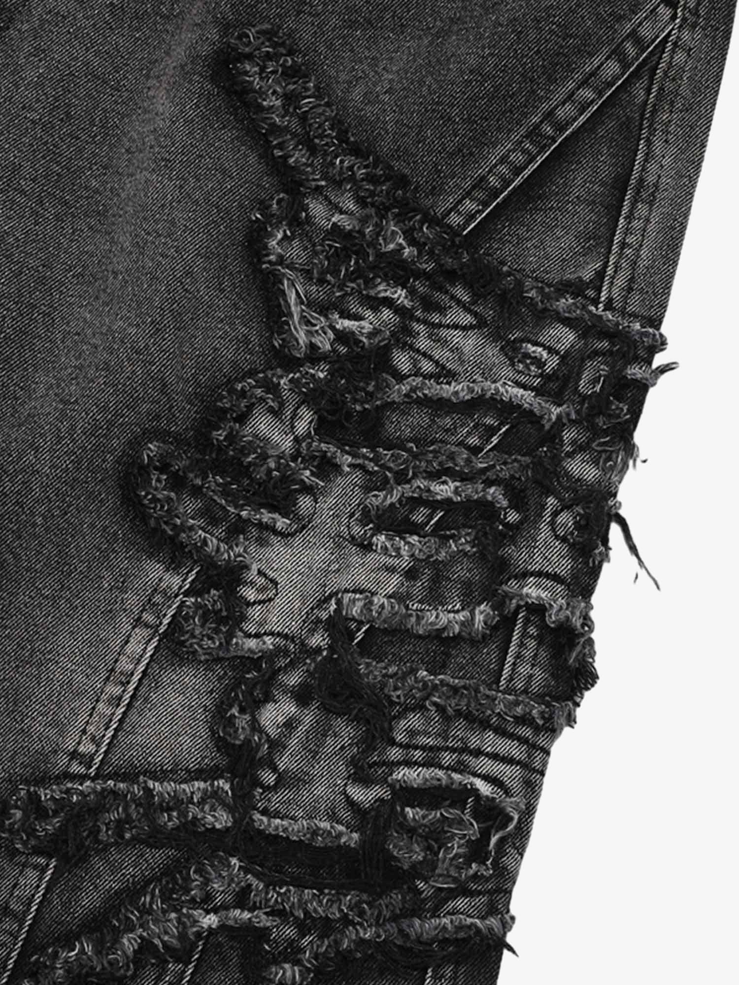 • Detail Features: Floral Embroidery, Wide Leg, High Waist, Frayed Hem