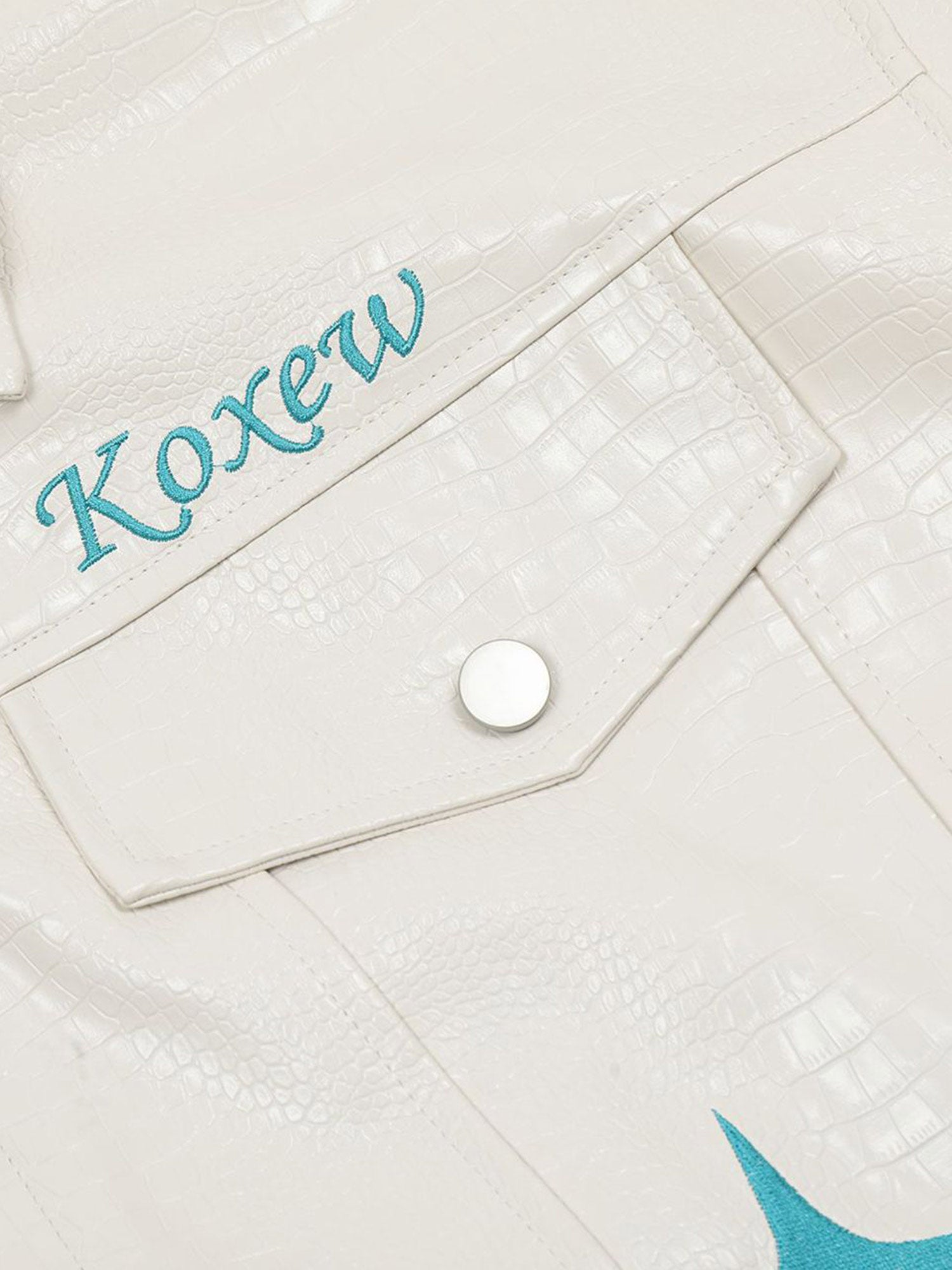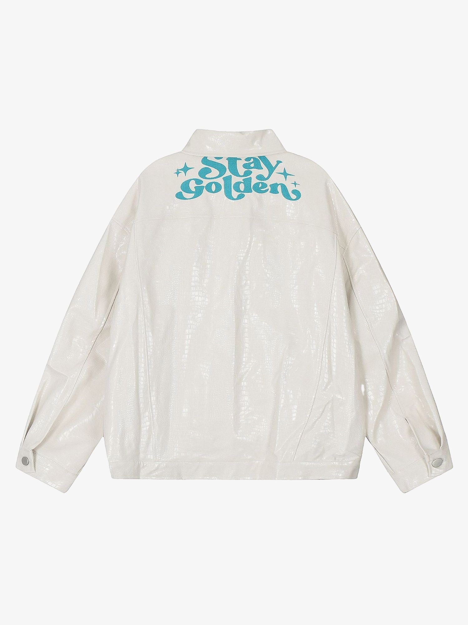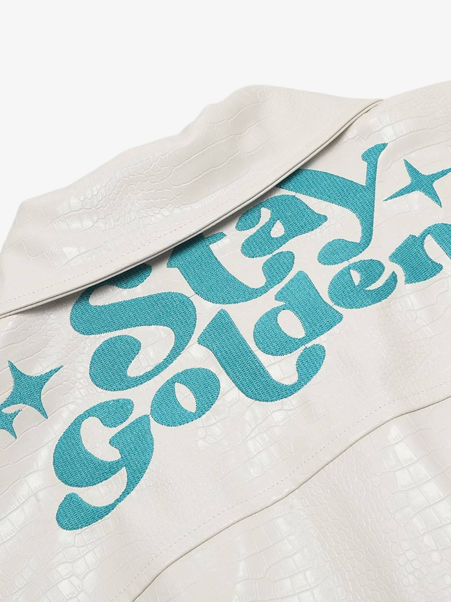 Star Embroidered PU Leather Jacket - 2358