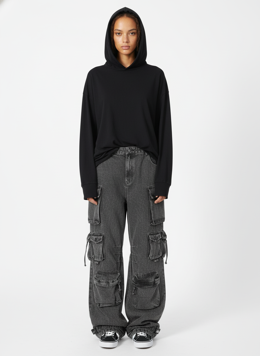 Street Stitching Multi-Pocket Workwear Washed Jeans - 2209