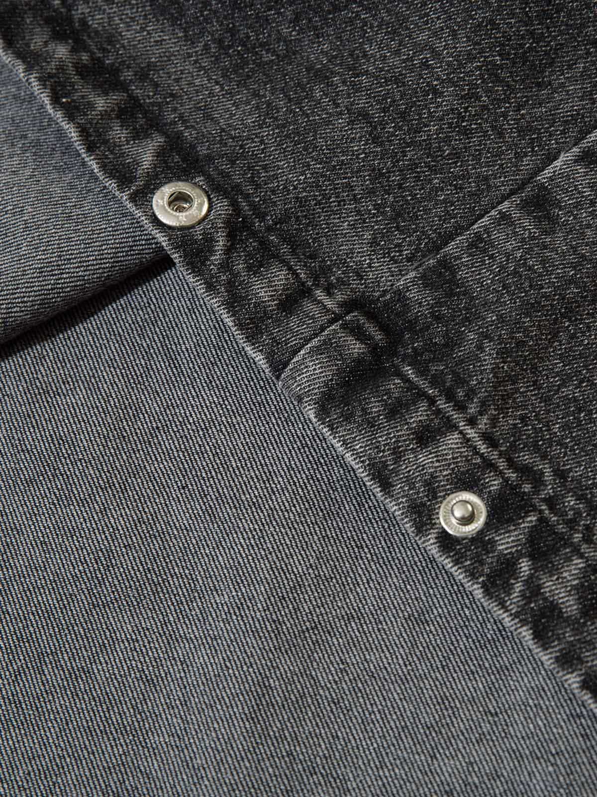 Washed Distressed Metal Zipper Hooded Denim Sweatshirt