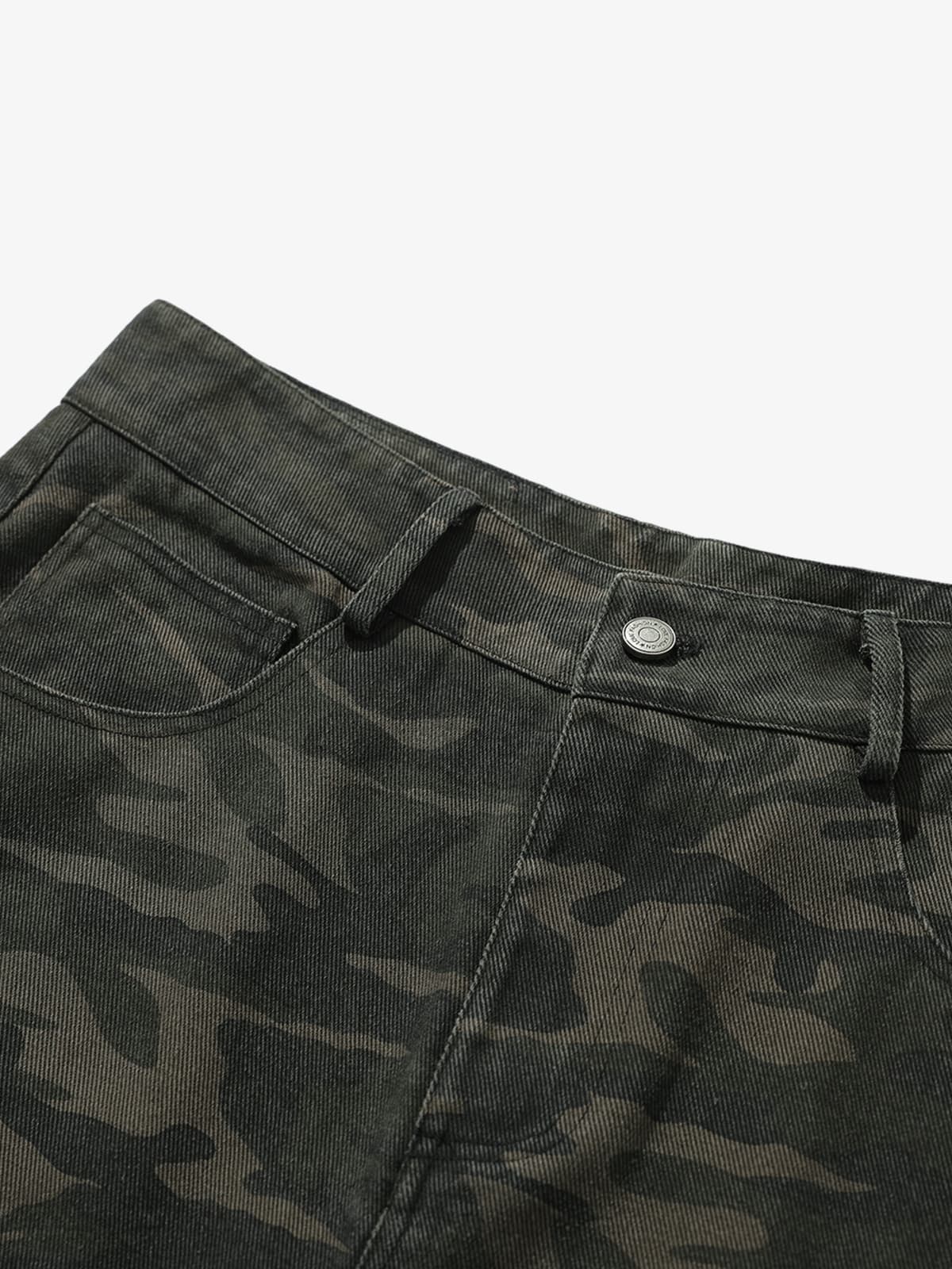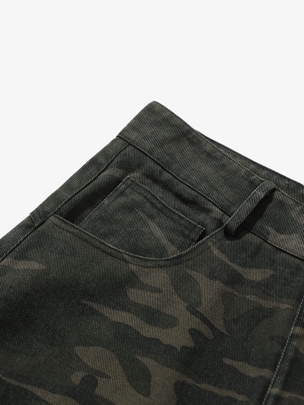Vintage Camouflage Print Multi-Pocket Cargo Barrel Pants