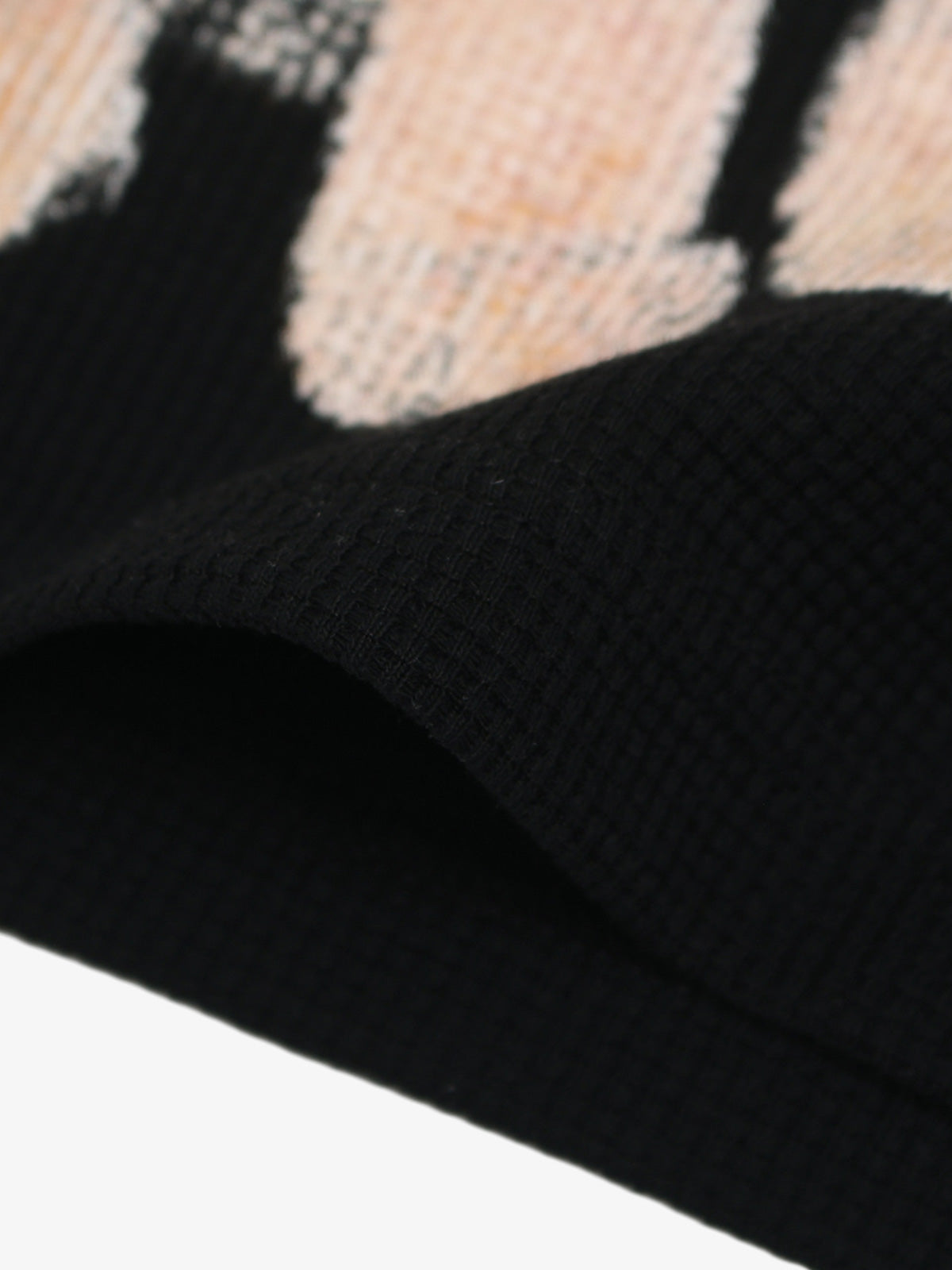 Constructed from lightweight polyester, this tee features a relaxed silhouette with a smooth, soft-touch finish. The front showcases a bold multi-panel cat graphic print, delivering a playful yet edgy visual impact. The high-resolution print maintains sharp detail and color contrast against the dark base. Designed for everyday wear with breathable comfort and easy care.