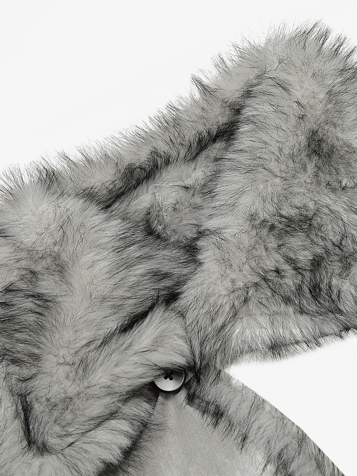 Vintage Dirty Dyed Washed Faux Fur Collar Padded Jacket