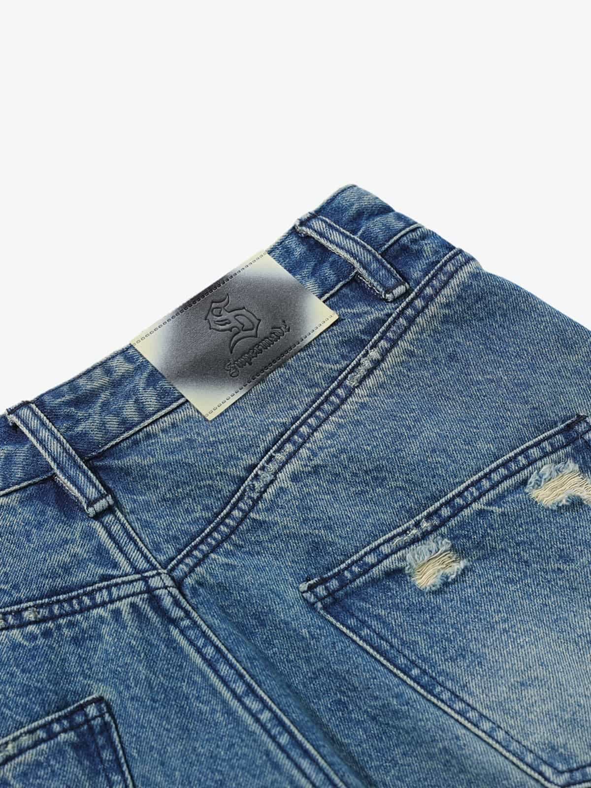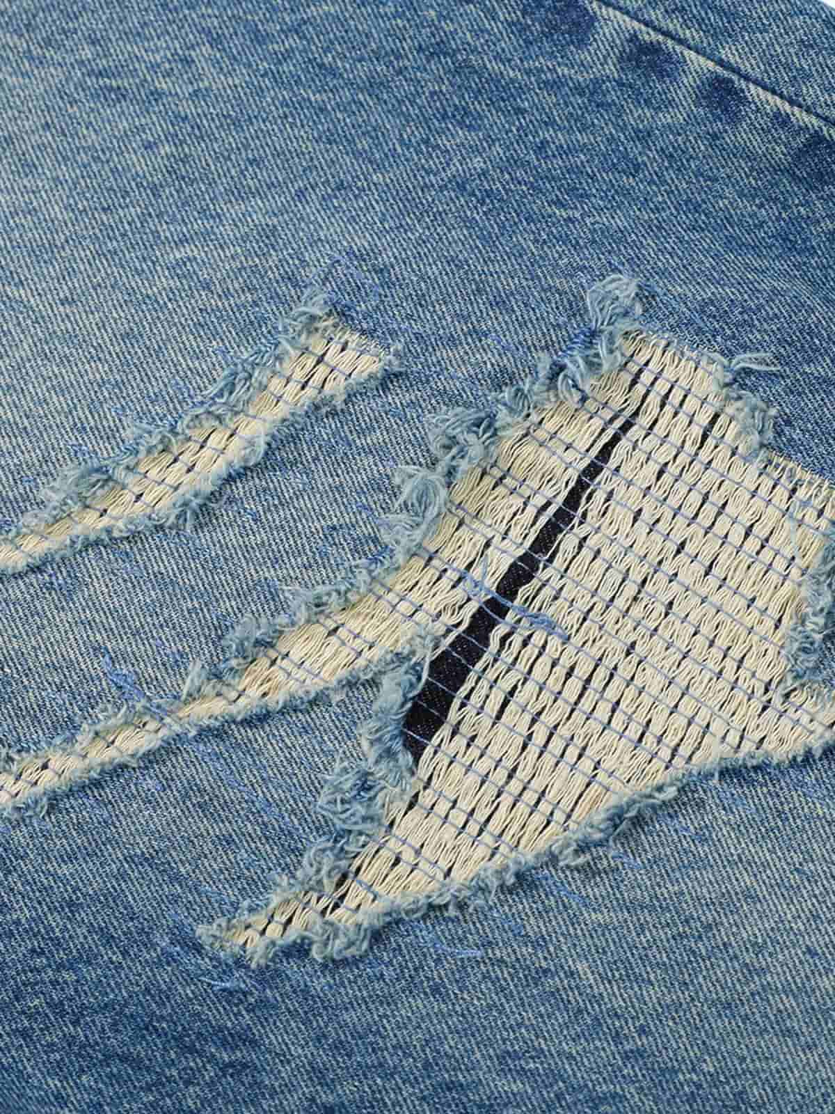 Denim Contrast Striped Stitching Barrel Jeans - 2504