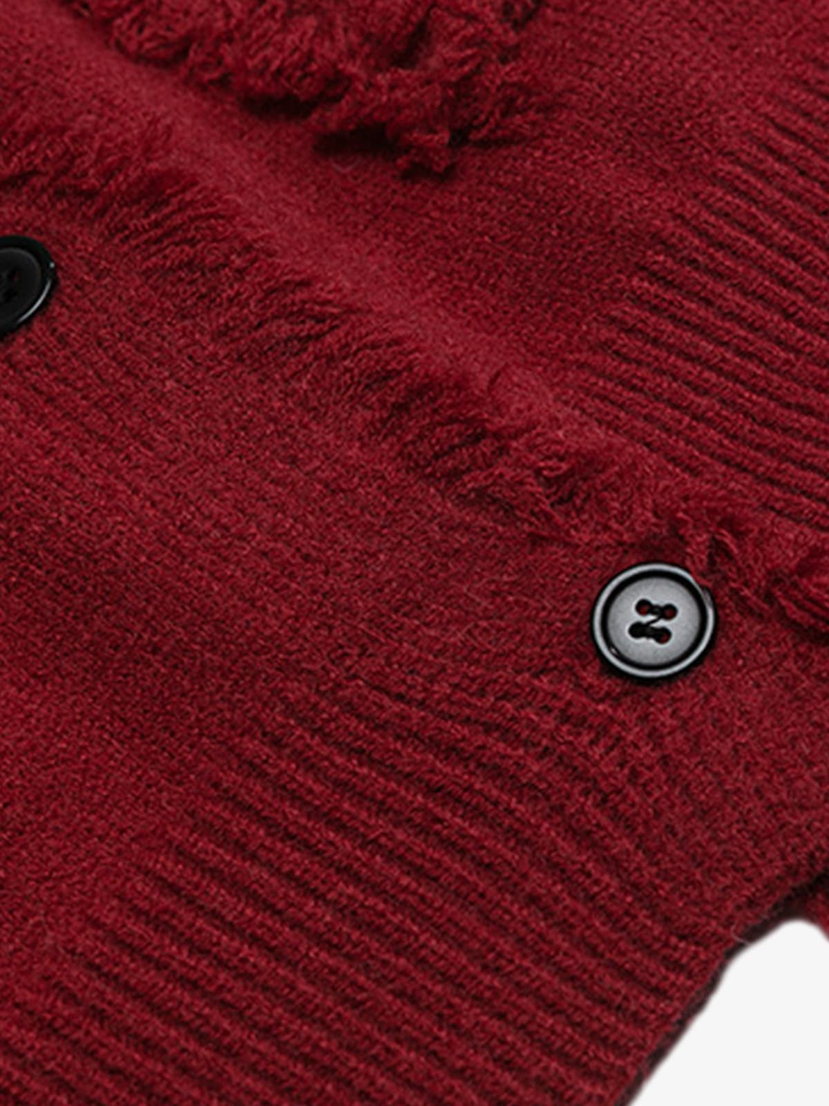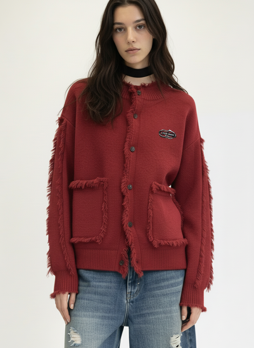 • Design Elements: Fringed edges, button front closure, decorative patch pockets