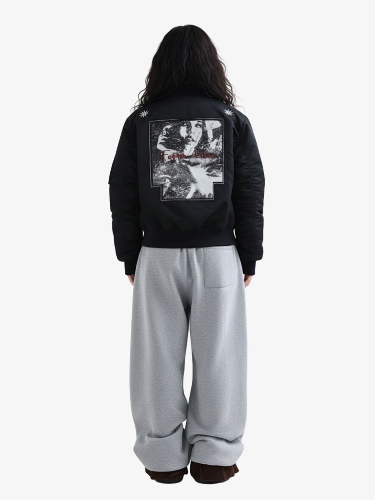 • Design Elements: Large Back Graphic Print, Star Patches on Shoulders, Embroidered Text Detail