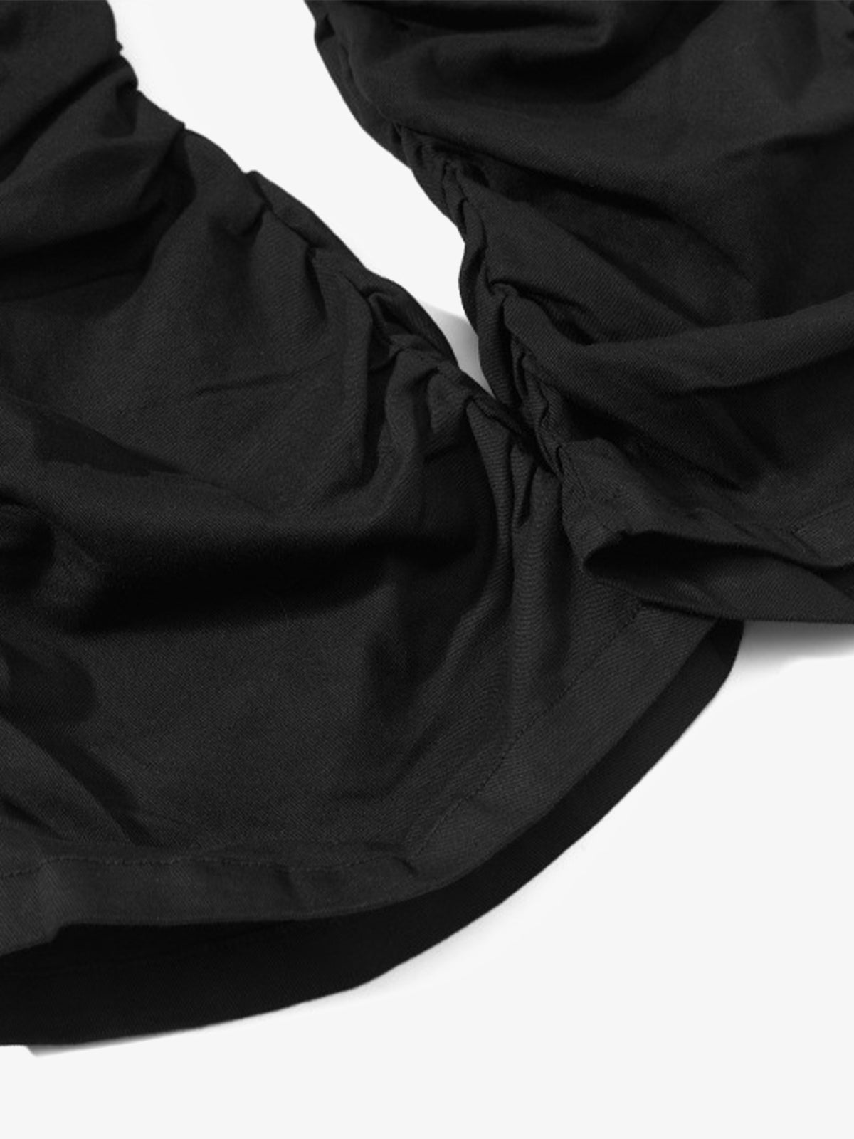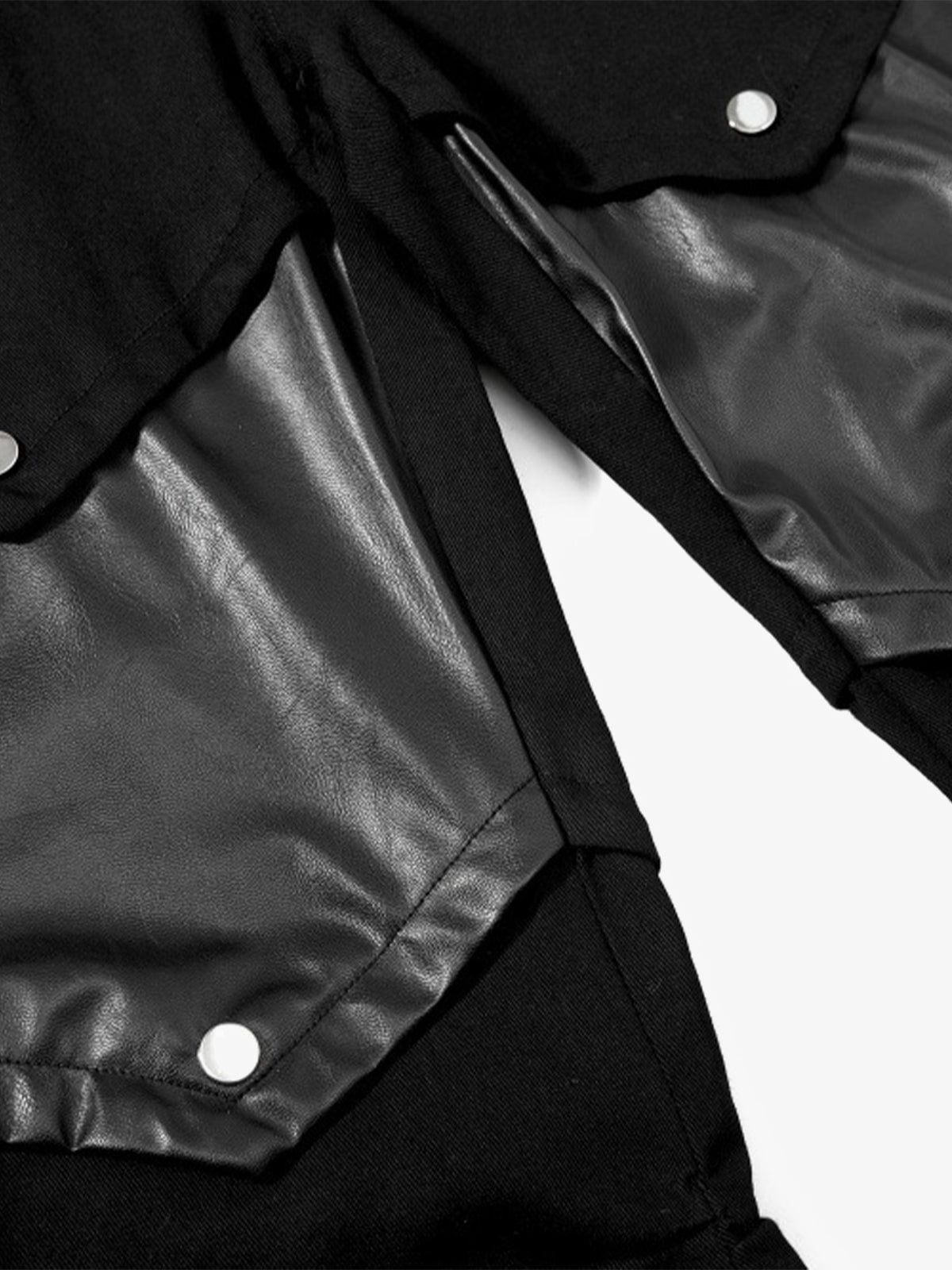 Vintage Heavy Pleated PU Leather Stitch Patchwork Flared Pants