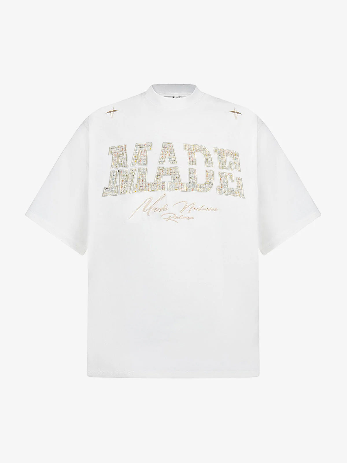 • Design Elements: Eye-catching graphic print with intricate details, decorative shoulder embellishments