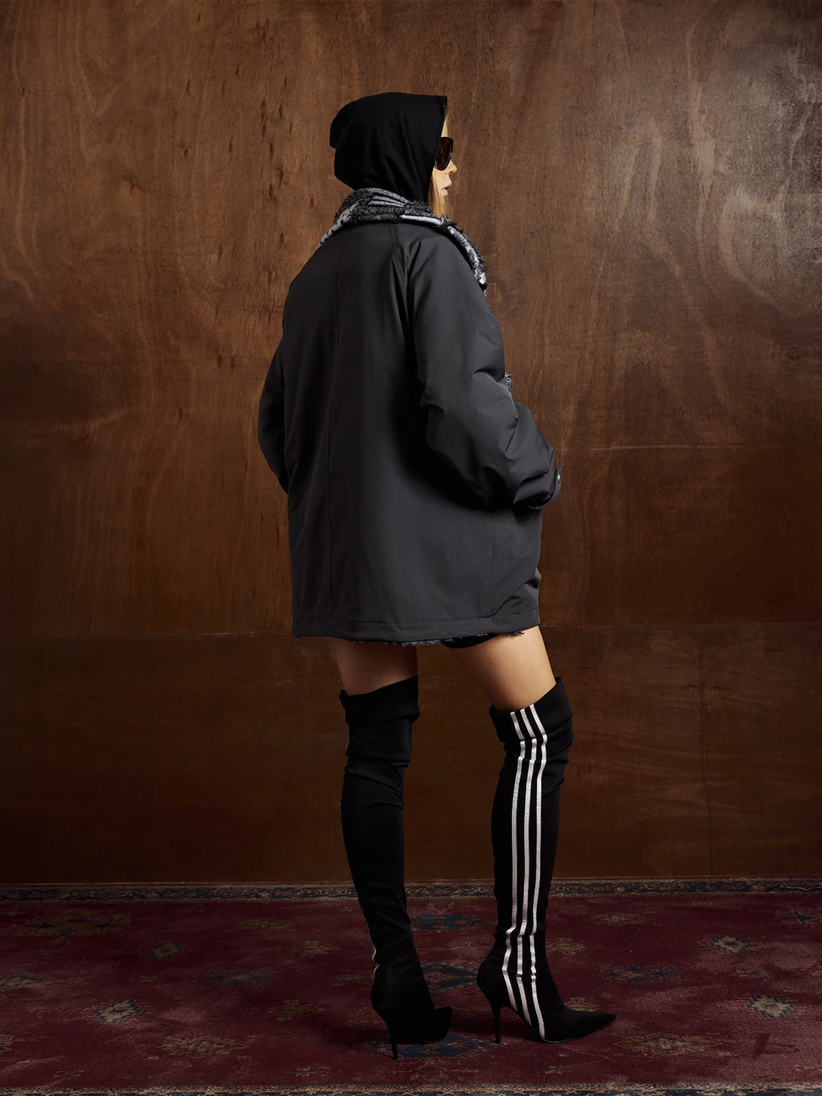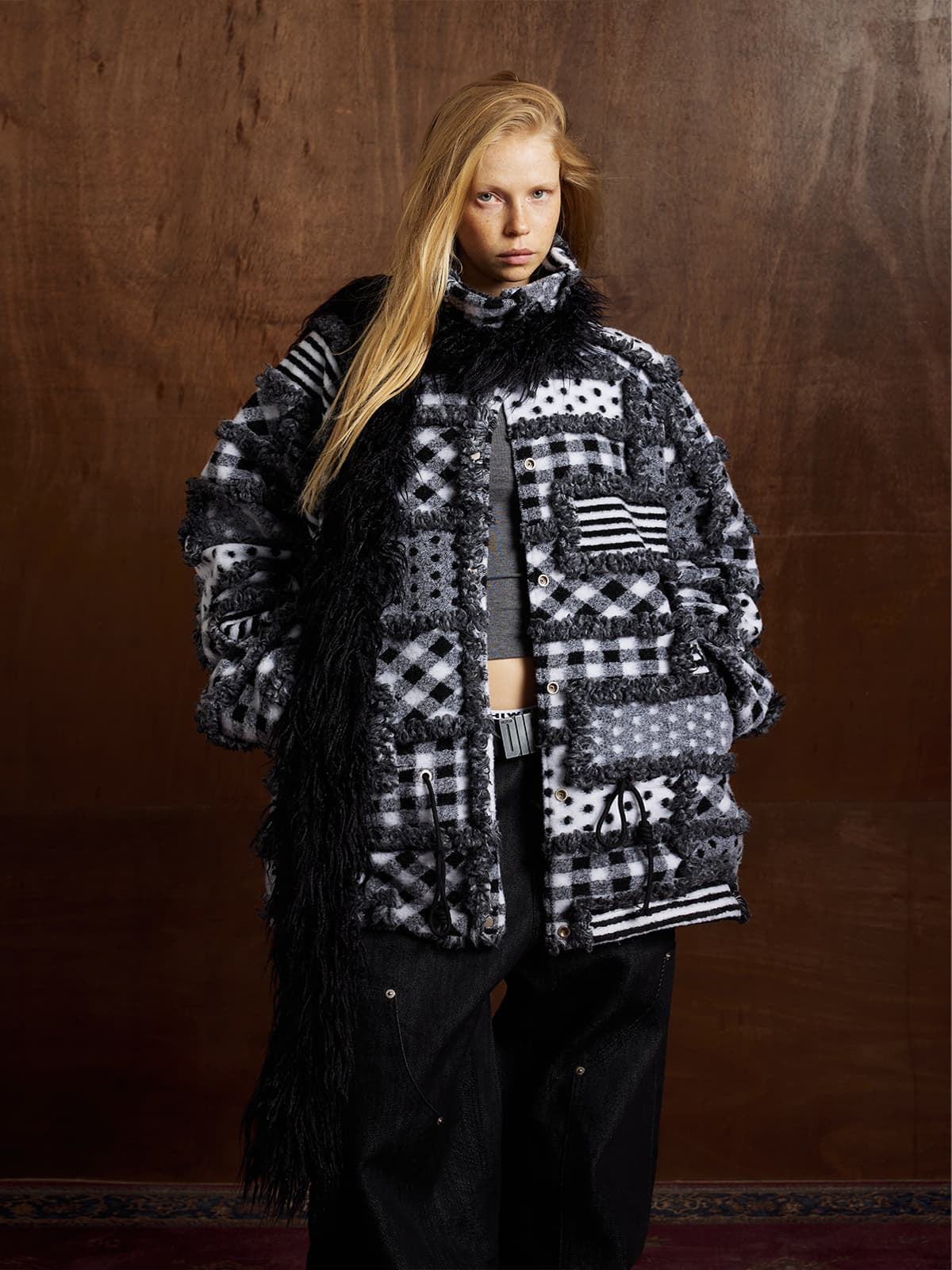 • Design Elements: Faux fur collar and cuffs, button closures, patch pockets