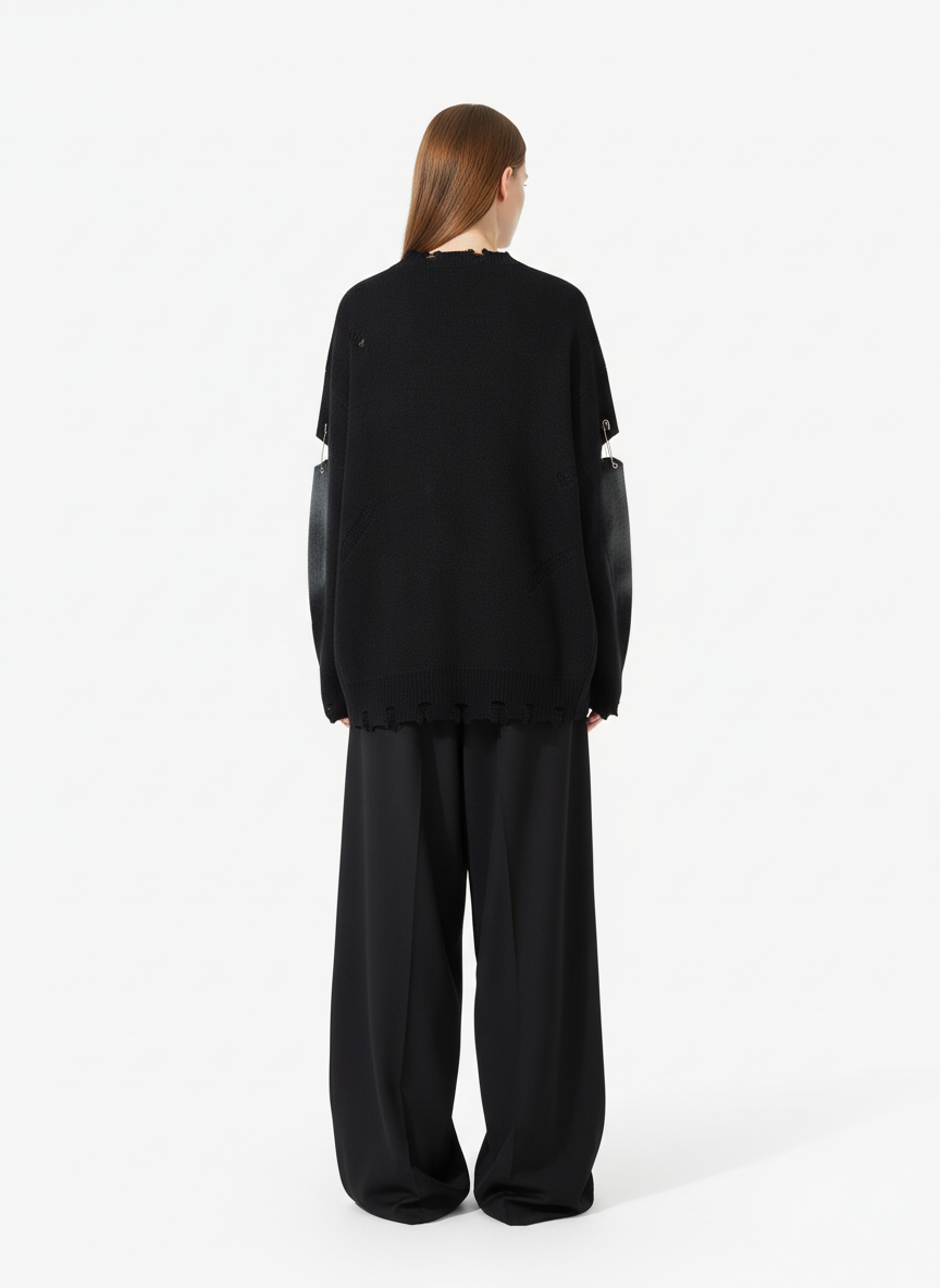 Vintage Spray-Painted Cross Hole Knit Sweater
