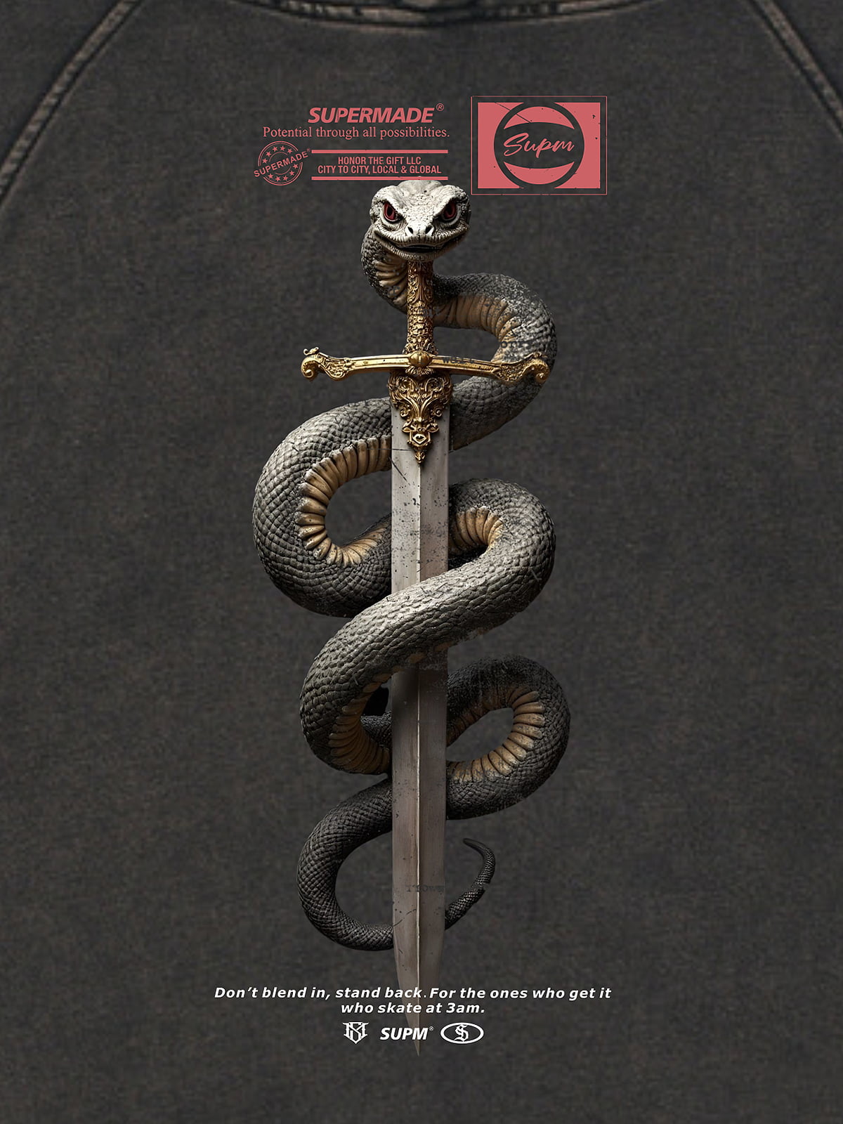 • Details: Front Snake Graphic Print, Checkerboard Hem Detail, Drawstring Hood, Ribbed Cuffs and Hem