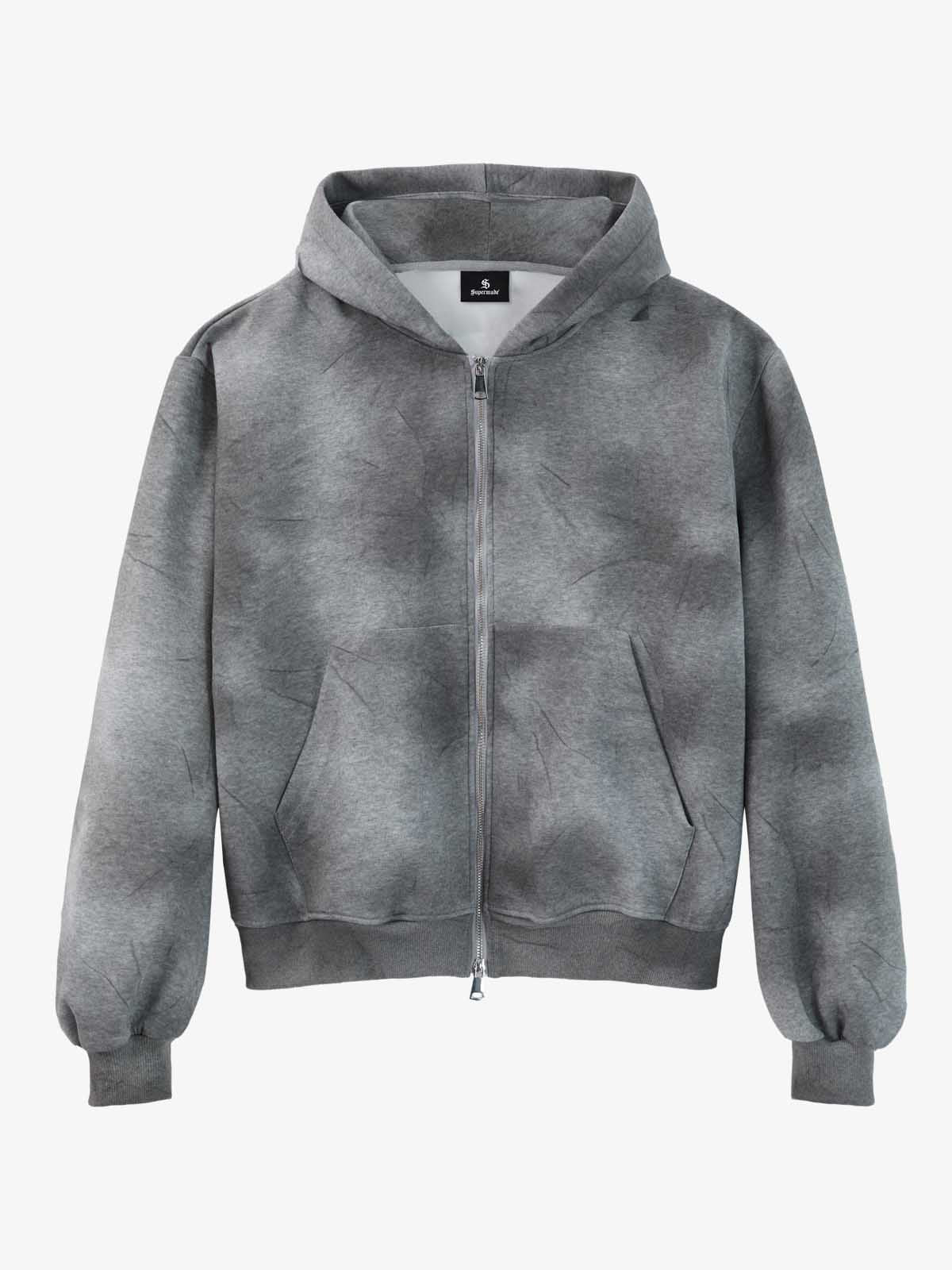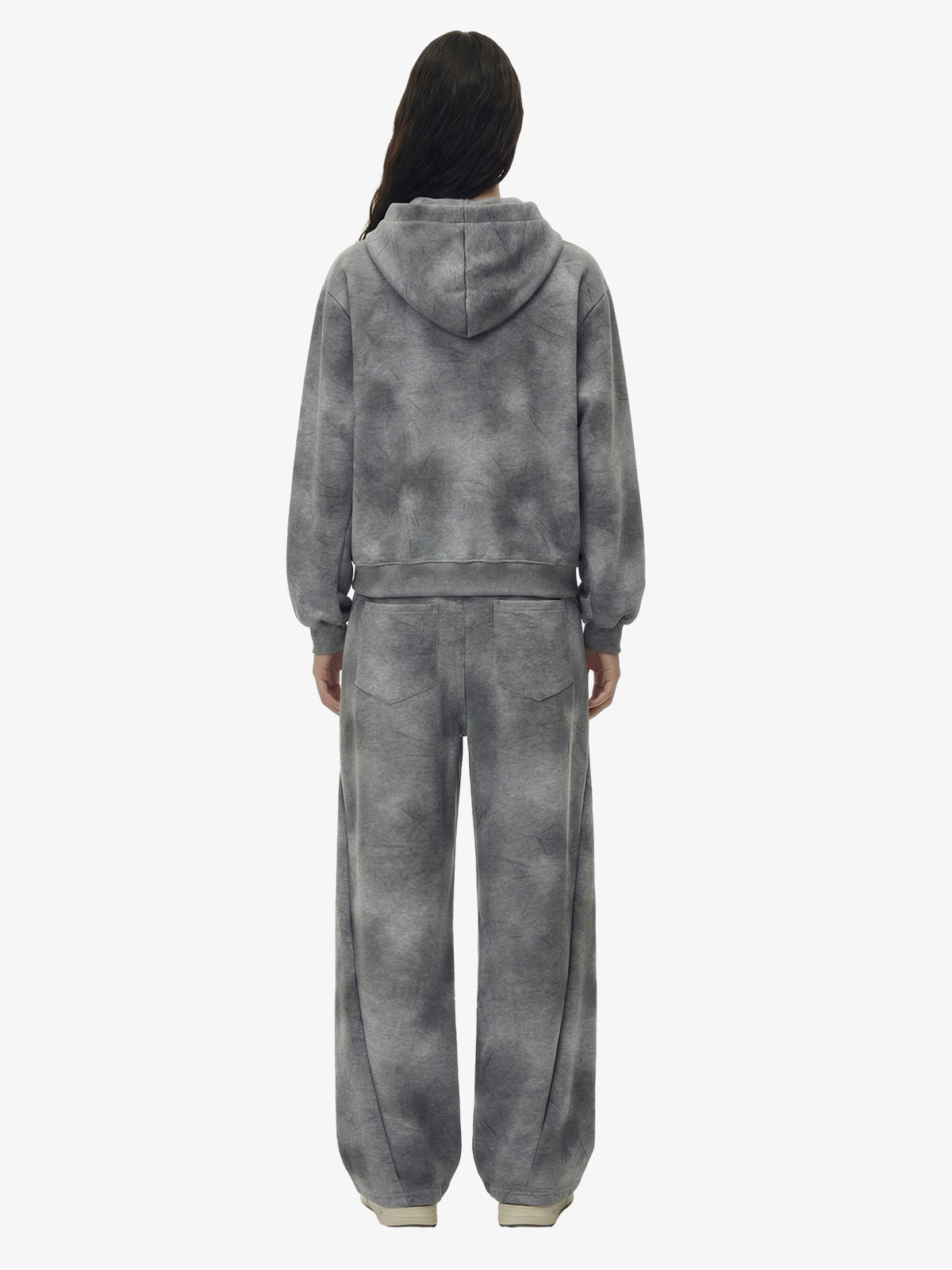 Constructed with a retro streetwear aesthetic, this two-piece tracksuit set features a zip-up hoodie paired with relaxed barrel sweatpants. The surface is finished with an all-over washed tie-dye treatment, creating a smoky, clouded fade effect that delivers a naturally worn-in vintage look. The hoodie is designed with a structured hood, ribbed trims, and a full front zip closure, while the sweatpants incorporate curved panel construction and a loose tapered barrel leg for added shape and comfort. Ideal for casual styling, travel fits, or everyday laid-back wear.