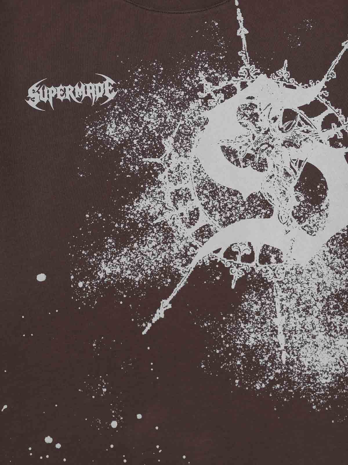 Crafted from soft washed cotton, this long sleeve tee features a bold oversized brand “S” logo at the center, amplified with splatter-style graphic detailing for a raw, distressed visual effect. The rich brown base enhances the contrast of the artwork, while subtle logo accents at the chest and back add layered identity. Designed with a clean crew neckline and relaxed silhouette, it delivers everyday comfort with a strong branded statement.