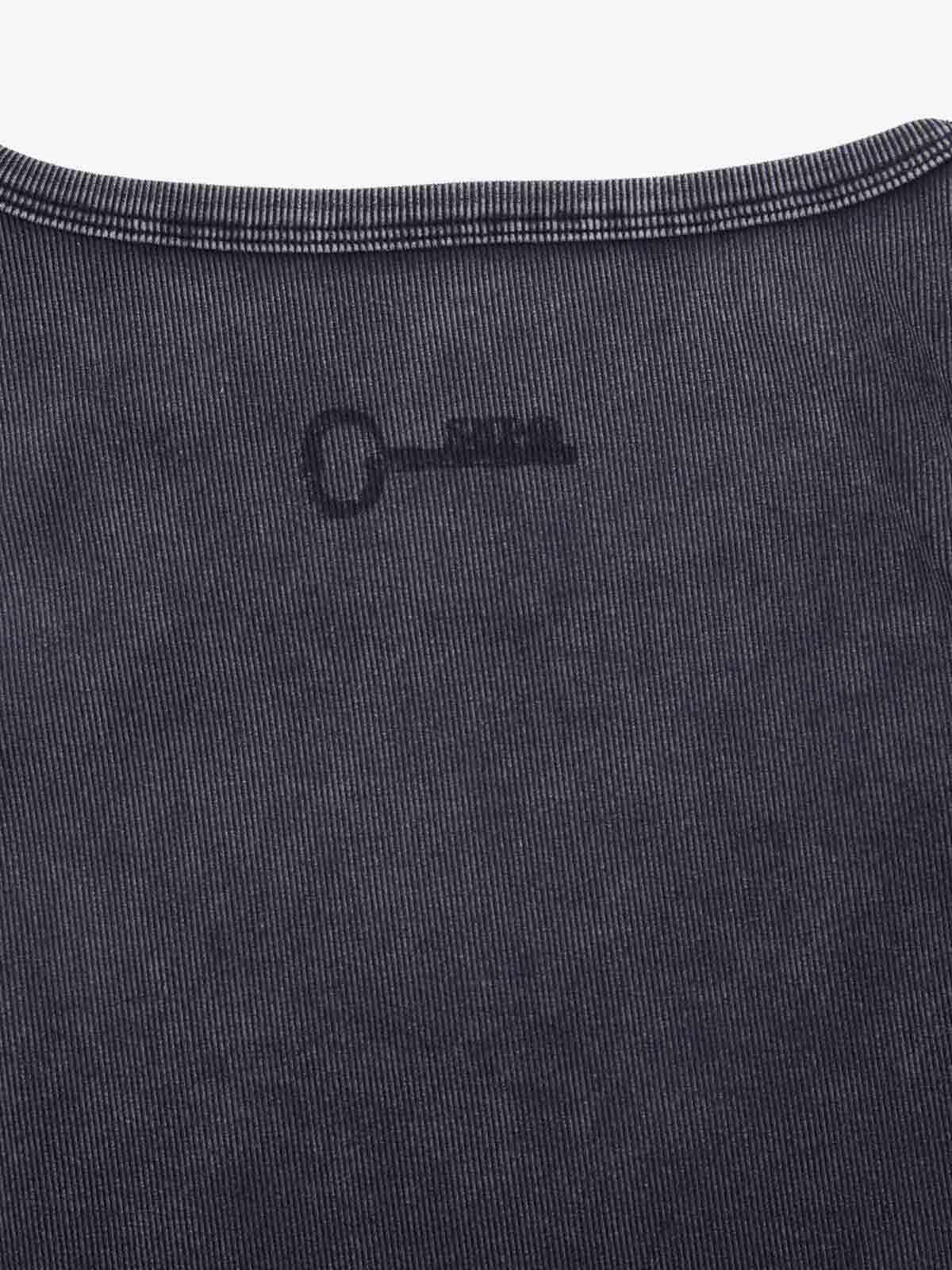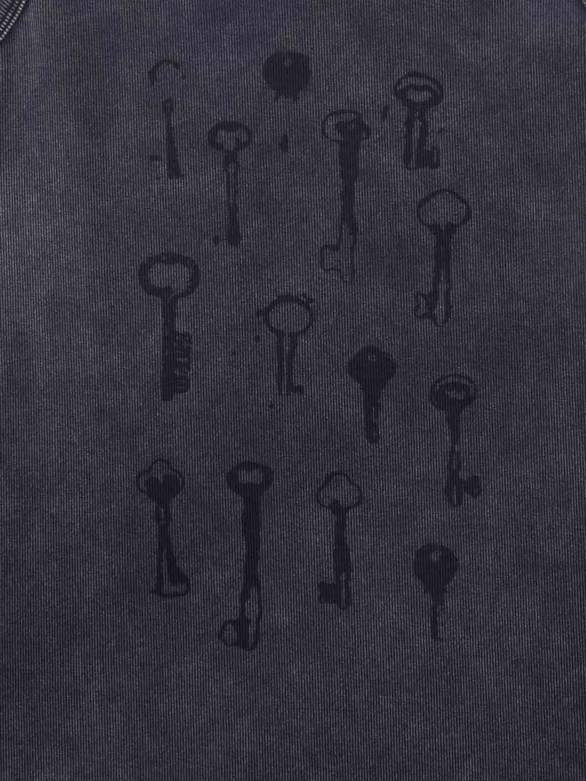 Crafted from a soft cotton blend fabric, this vest features a faded washed finish that gives the piece a worn vintage look. The front is printed with a scattered key graphic, creating a simple but eye-catching visual detail. The dark washed tone and sleeveless cut make it easy to style for everyday streetwear.