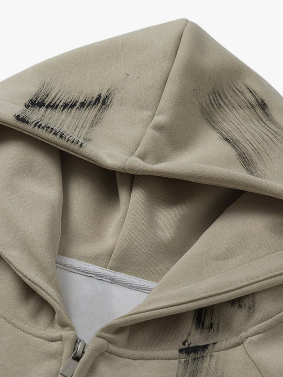 Retro Wasteland Star-Print Brush Ink Print Cardigan Hoodie