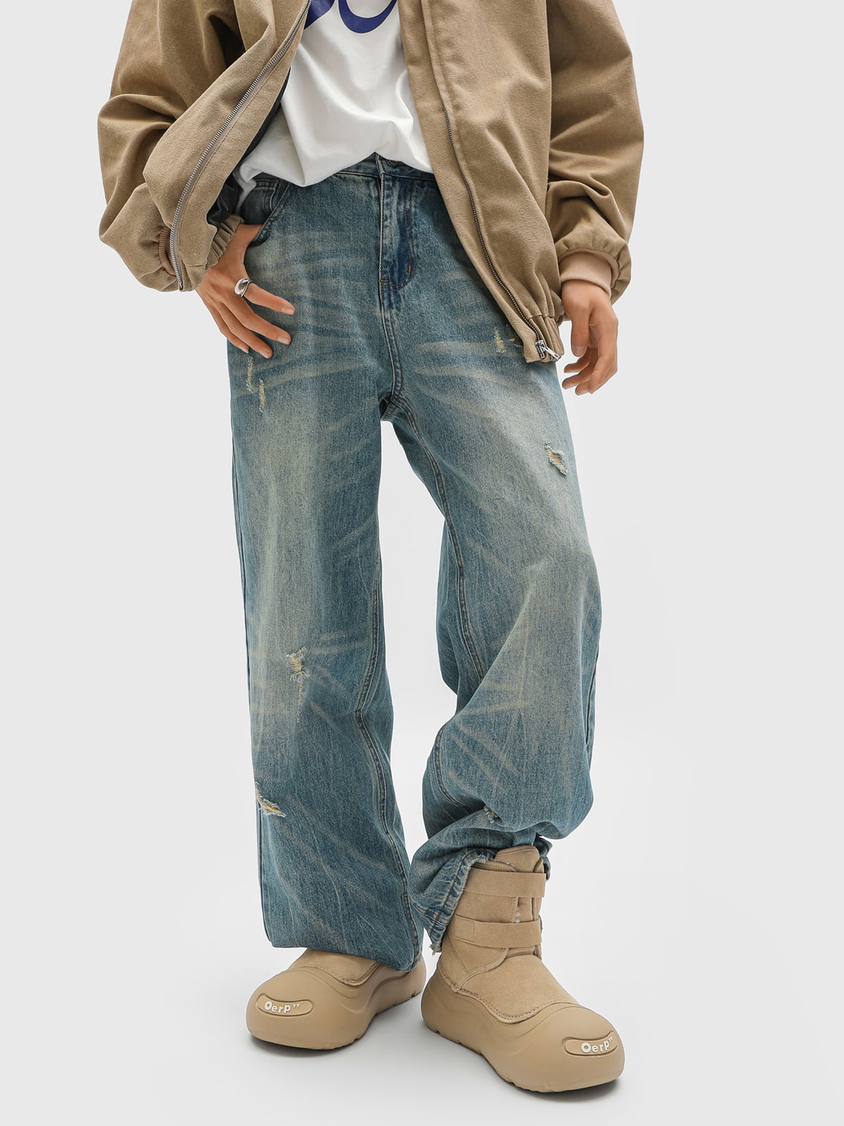 Denim Contrast Striped Stitching Barrel Jeans - 2504